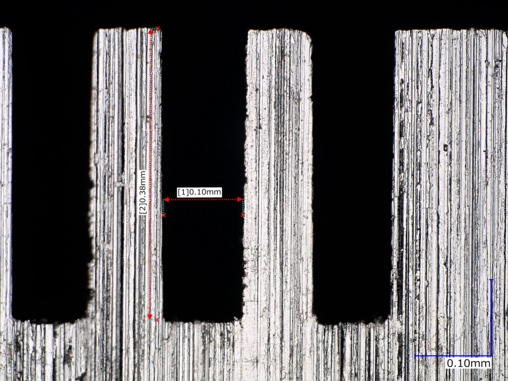 - 左部品の拡大写真。 溝幅0.1mm×0.4mm深さ